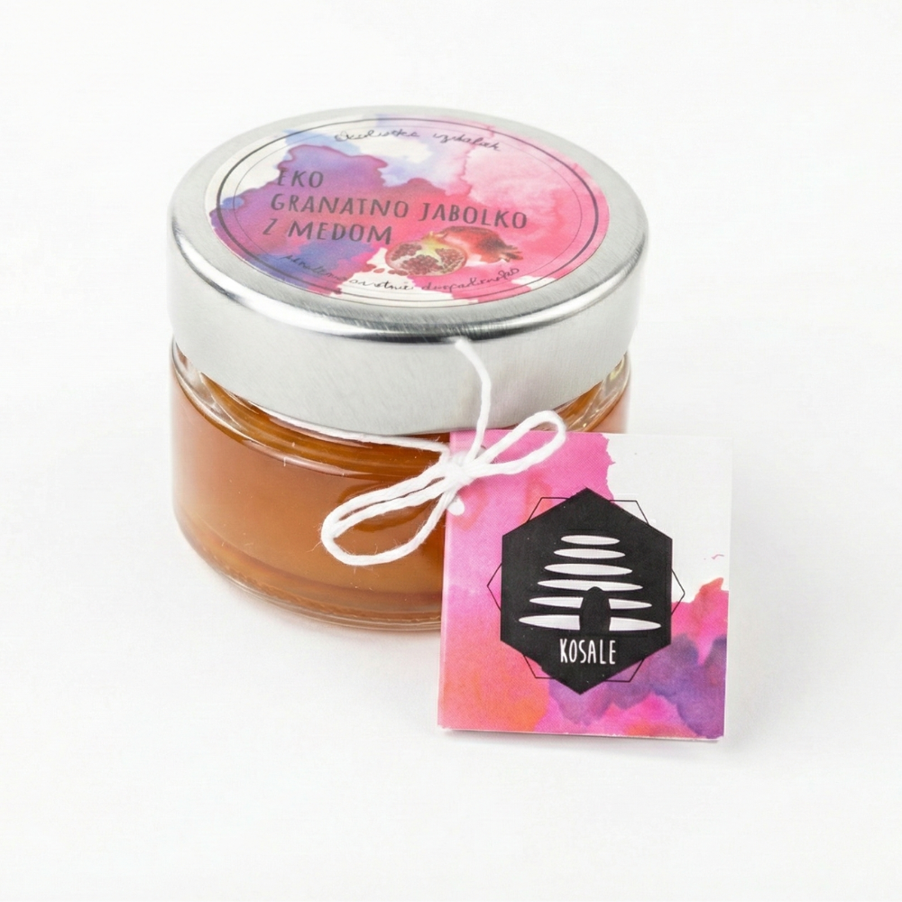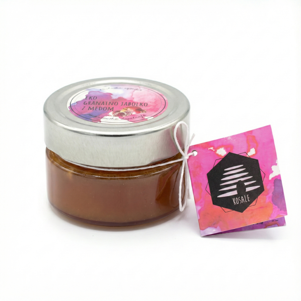 Hladno pridelan izvleček sveže stisnjenega soka granatnega jabolka, kateremu je primešan ekološki med in tako nastane Sok granatnega jabolka z medom. Izdelek združuje sladek okus medu in kiselkast okus granatnega jabolka, ki se med seboj čudovito dopolnjujeta.